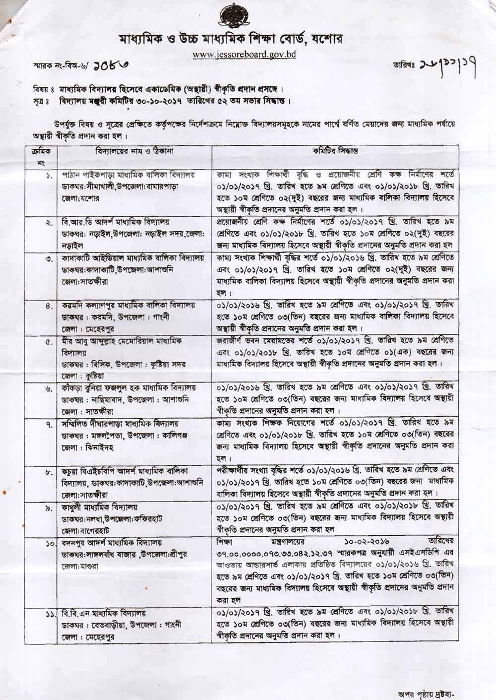 পাঠদানের অনুমতি ও স্বীকৃতি